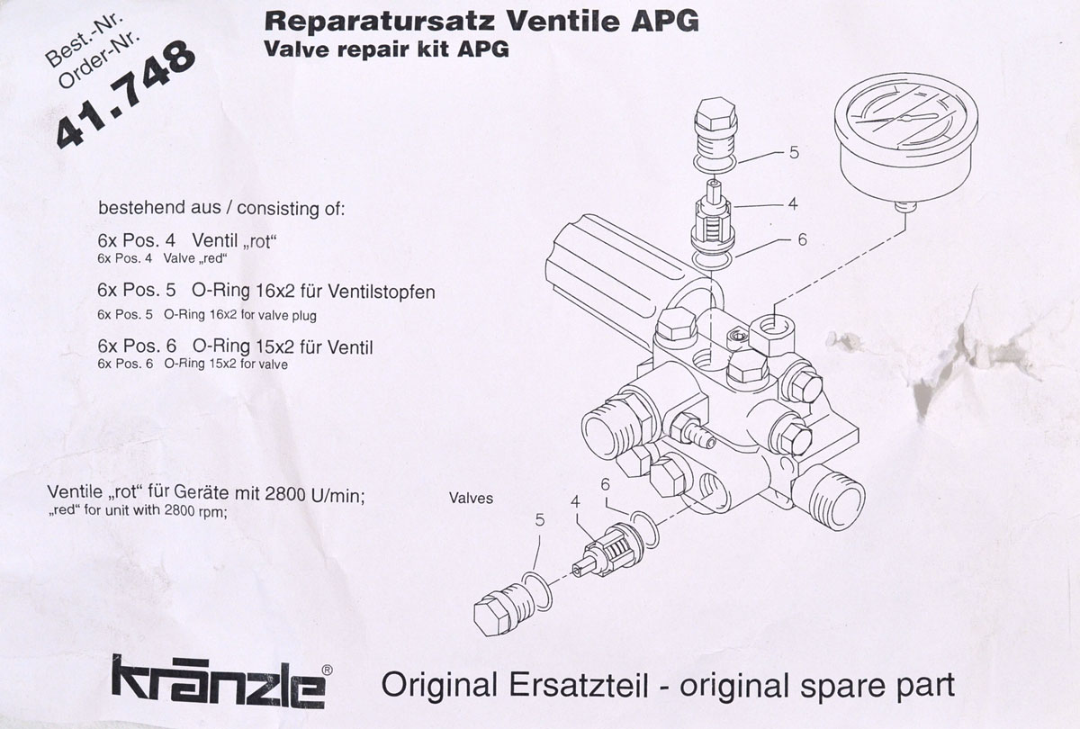 Reparatursatz für Ventile der Pumpenserie APG von Kränzle.