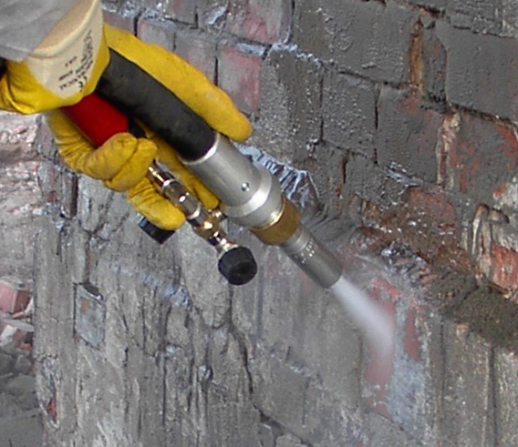 Diese Wirbelstrahldüse ermöglicht eine sehr schonende und effektive Sandstrahlarbeit und ist geeignet zum Nass- und Trockenstrahlen. Sie perfektioniert das bei Denkmalpflegern beliebte JOS-Strahlen bzw. die damit verwendete Düse. Die Düse verwirbelt das Korn und führt so zu einem niedrigen Aufprallwinkel auf das Strahlobjekt. Durch das hinzugefügte Wasser kann Staub reduziert werden und die Abrassivität gemindert werden. Das Besondere: alle Einzelelemente sind auszutauschen und durch Wechsel von Einzelkomponenten kann man die Düse sowohl als Wirbelstrahl-, Flachstrahl- oder Rundstrahldüse eingesetzen. Klassische Anwendungsbereiche sind z.B. leichte und filigrane Arbeiten im Steinmetz-/Restaurierungsbereich.